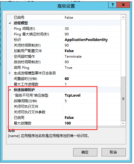 临时补救该错误的一个方法为,调整应用程序池“服务不可用”响应类型为TcpLevel,这样好歹应用程序池不会挂了,但问题依旧存在。