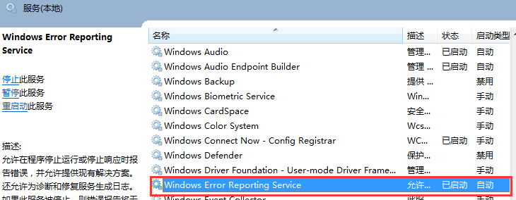 1、启动 Windows Error Reporting Service 服务
