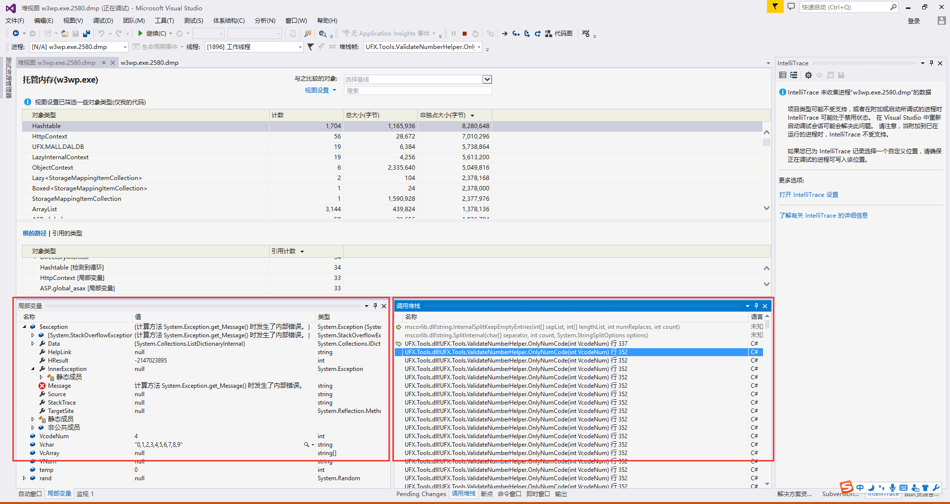 打开局部变量和堆栈调试,异常代码位置里面顿现!然后就是找到这个大bug kill它!事件记录终于清爽了!