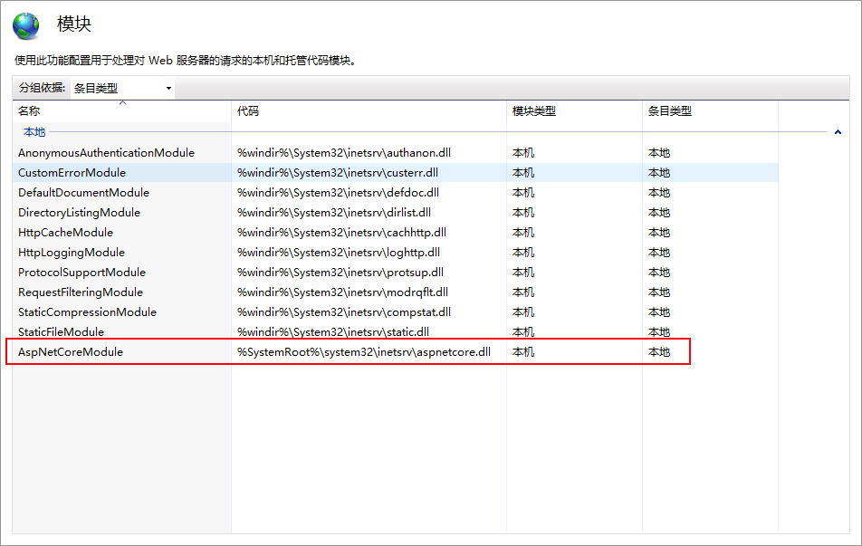 部署之前要确保你的IIS上已经安装了AspNetCoreModule托管模块,如果没有的话,点击DotNetCore.2.0.8-WindowsHosting进行下载并安装