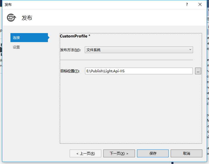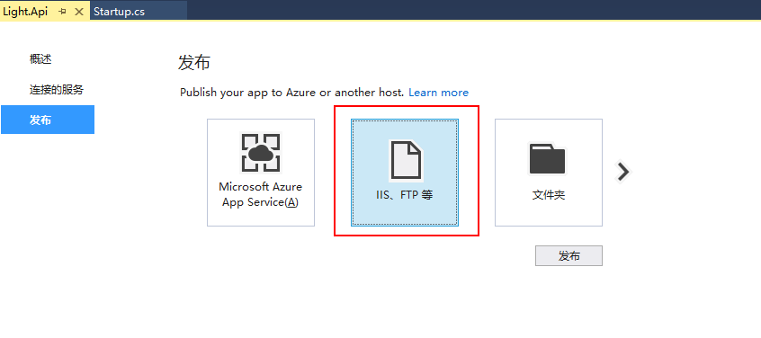 1、发布我们上一篇建好的ASP.NET Core API项目,然后选择IIS,新建一项发布配置