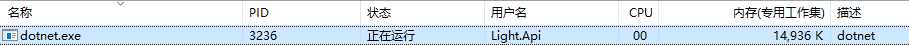 而此时你再回过头来看任务管理器,那么就会又多了一个dotnet的进程
