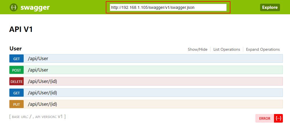 纠结了半天,原来是因为网站没有自动重定向到/swagger/ui页面,重新访问:http://192.168.1.105/swagger/ui,你会看到熟悉的画面