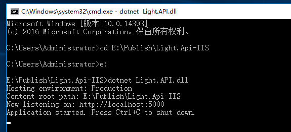 4、当然了,你还可以基于CLI的Publish命令进行发布,只需切换到Light.API根目录下,输入以下命令即可