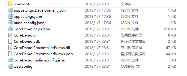 从下图发布的文件图片可以看出,不像以前bin目录下有很多dll,现在总体文件大小比以前小了很多