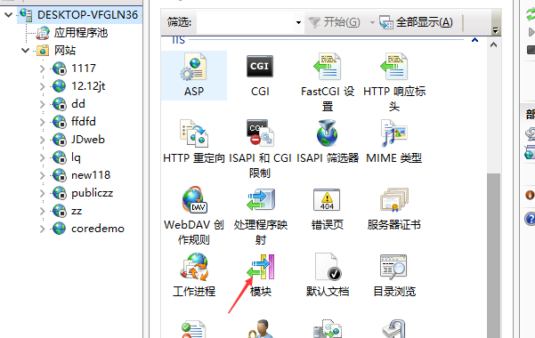 (2)安装之后在模块里可以找到AspNetCoreModule就说明成功了