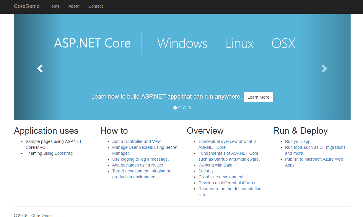 安装之后再次输入dotnet CoreDemo.dll: