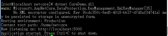 如果输入dotnet CoreDemo.dll出现报错,运行命令: sudo yum install dotnet-sdk-2.1.3(或者在上面第6步操作的时候直接安装这个)