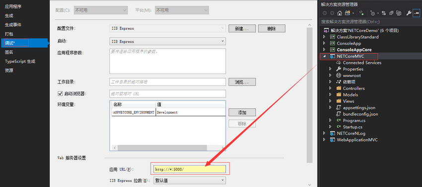 方式二:修改配置,选择当前项目=>属性=>调试:应用URL输入要指定的端口号;